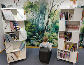 Dazu gehören ein Medientrog für DVDs, der zum Entdecken und Stöbern einlädt, sowie ein weiterer Medientrog für die gany kleinen Leser, der den Kindern eine noch einfachere Auswahl ihrer Lieblingsbücher auf Augenhöhe ermöglicht. Auch eine gemütliche Sitzgelegenheit in der Lesewelt sorgt für mehr Komfort beim Schmökern. Und für Comic-Fans gibt es nun eine eigene Leseecke, die zum Blättern und Staunen einlädt.